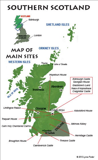 The sites start with those in and around Edinburgh, as many visitors begin their explorations in this area. The rest of the sites are laid out along the main south-to-north route popular with travelers driving up from England. However, all the places of interest are stand-alone and lend themselves to itineraries beginning anywhere in Southern Scotland.